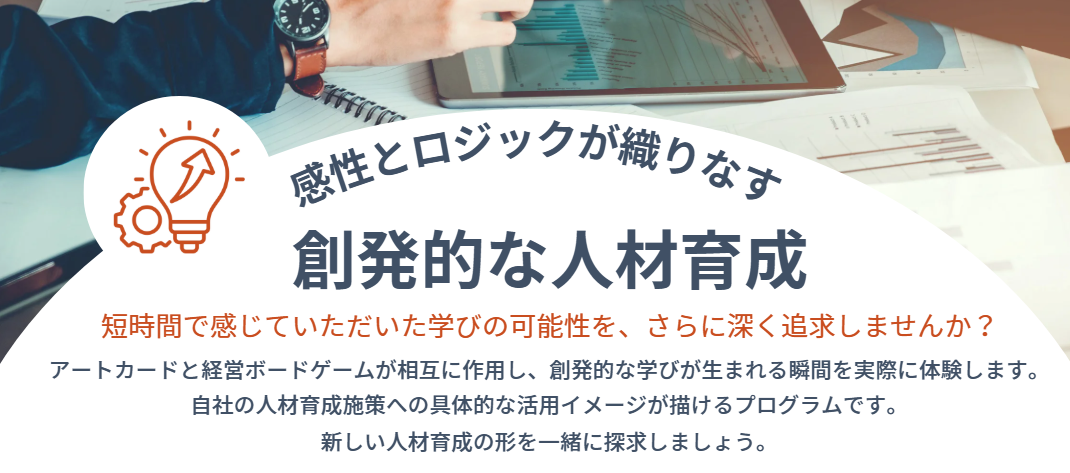 このたび、管理職層・次世代リーダー層を対象とした体験型研修「創発的な人材育成‐感性とロジックが織りなす」を開催いたします。